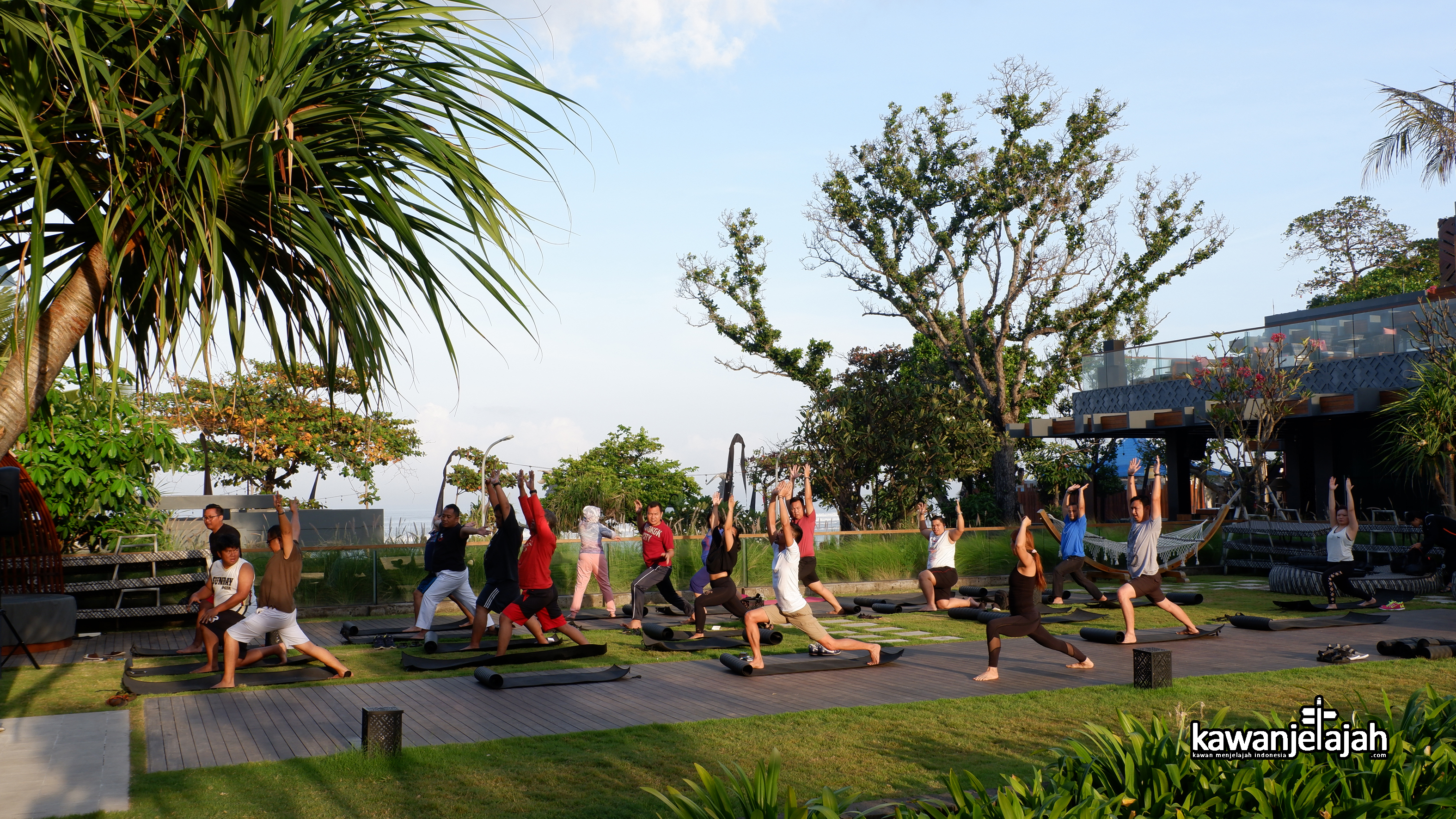 Bayangkan saat matahari mulai terbit, udara sejuk, dan suara deburan ombak menjadi latar belakang. Tarik dan hembuskan nafas secara teratur, dan gerakan tubuh mengikuti instruktur. Awali hari kawan dengan Yoga di tepi pantai.