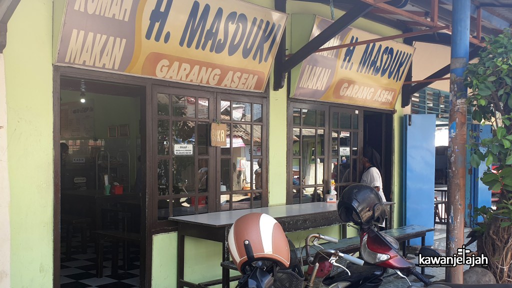 Tiba saat makan, saya langsung memutuskan untuk menyantap Garang Asem. Pilihannya tentu saja Garang Asem H. Masduki yang terletak di jalan Alun-Alun Utara, Pekalongan Timur. Rumah Makan Garang Asem H. Masduki ada dua di Pekalongan. Satu lagi ada di jalan Sudirman No.169, Kebulen, Pekalongan Barat, yang merupakan rumah makan modern dengan nuansa Jawa. Sedangkan yang di Alun-Alun Utara masih berbentuk warung sederhana.