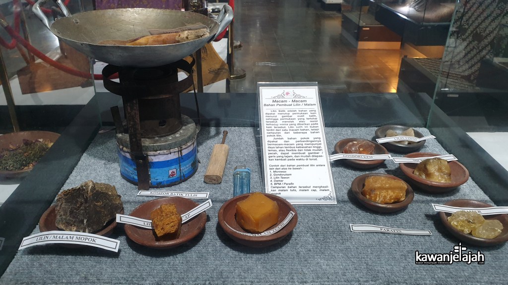 - Ruang Pamer 1 berisi berbagai alat dan bahan untuk membatik, seperti canting, lilin, dan berbagai pewarna alami. Ruangan ini juga memamerkan koleksi Batik dari pesisir Jawa.