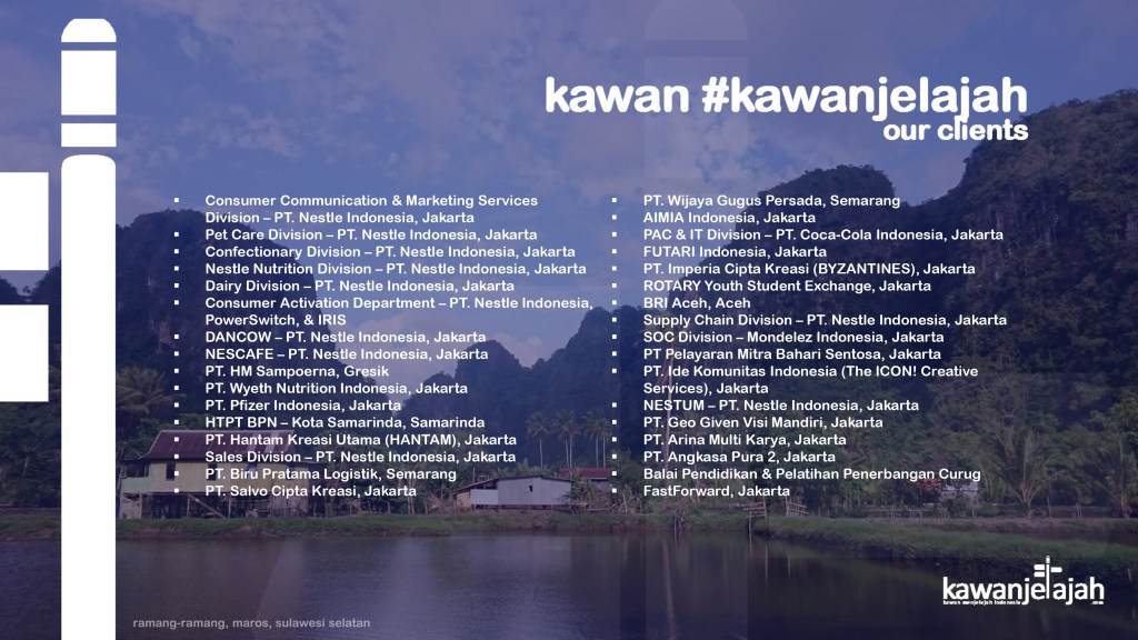 “Terima kasih kawanjelajah yang sudah arrange trip ini dengan sangat-sangat baik dan efisien, meskipun singkat waktunya tapi kami dapet paket komplit!”